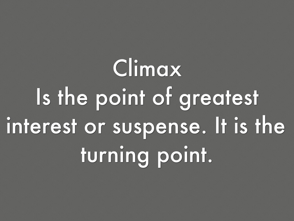 Is the point of greatest interest or suspense. It is the turning point.