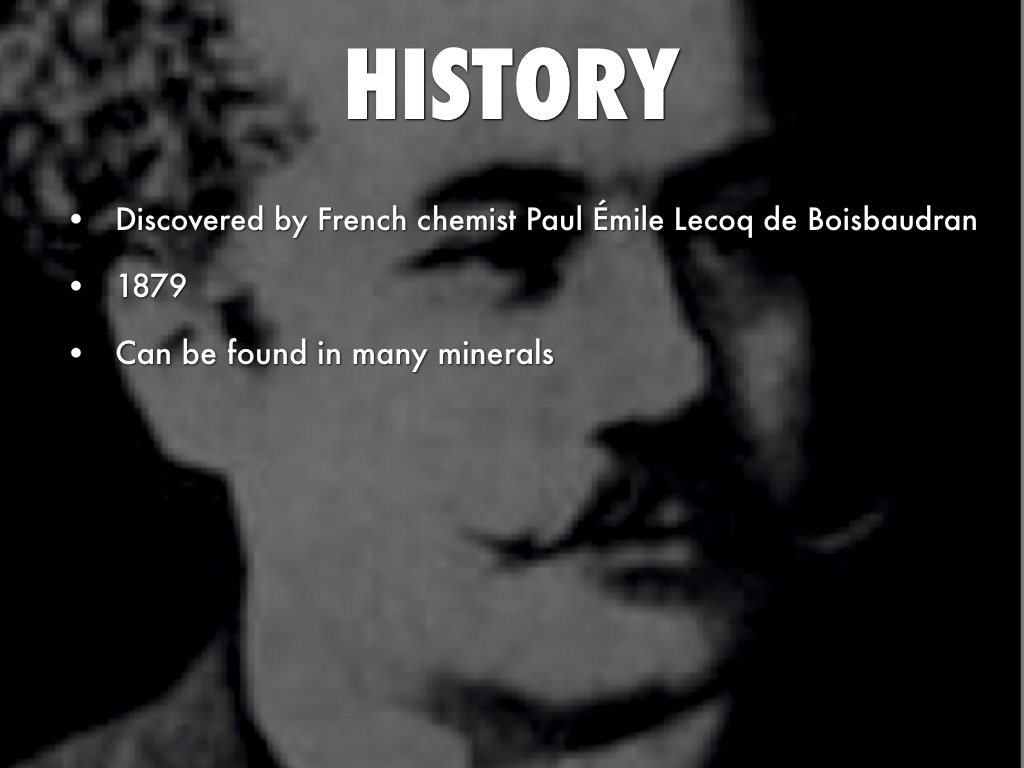 Discovered by French chemist Paul Émile Lecoq de Boisbaudran