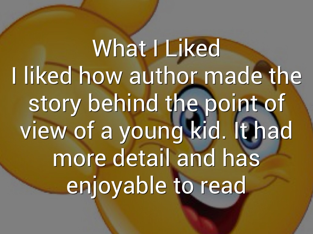 I liked how author made the story behind the point of view of a young kid. It had more detail and has enjoyable to read