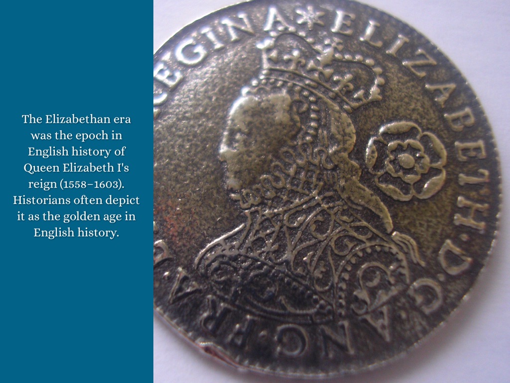 The Elizabethan era was the epoch in English history of Queen Elizabeth I's reign (1558–1603). Historians often depict it as the golden age in English history.