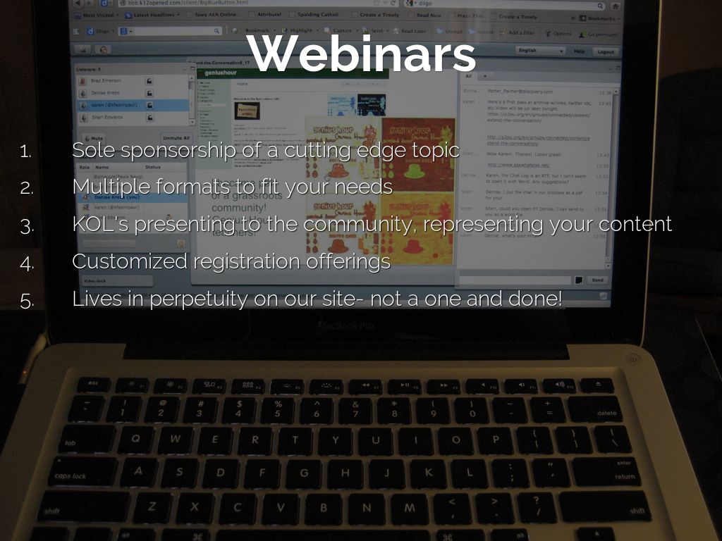 • KOL's presenting to the community, representing your content