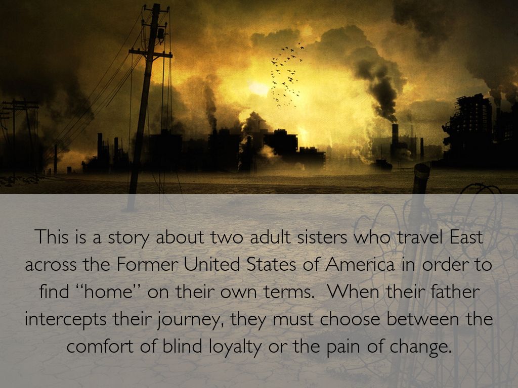 This is a story about two adult sisters who travel East across the Former United States of America in order to find “home” on their own terms. When their father intercepts their journey, they must choose between the comfort of blind loyalty or the pain of change.