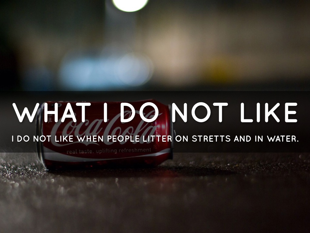 I DO NOT LIKE WHEN PEOPLE LITTER ON STRETTS AND IN WATER.