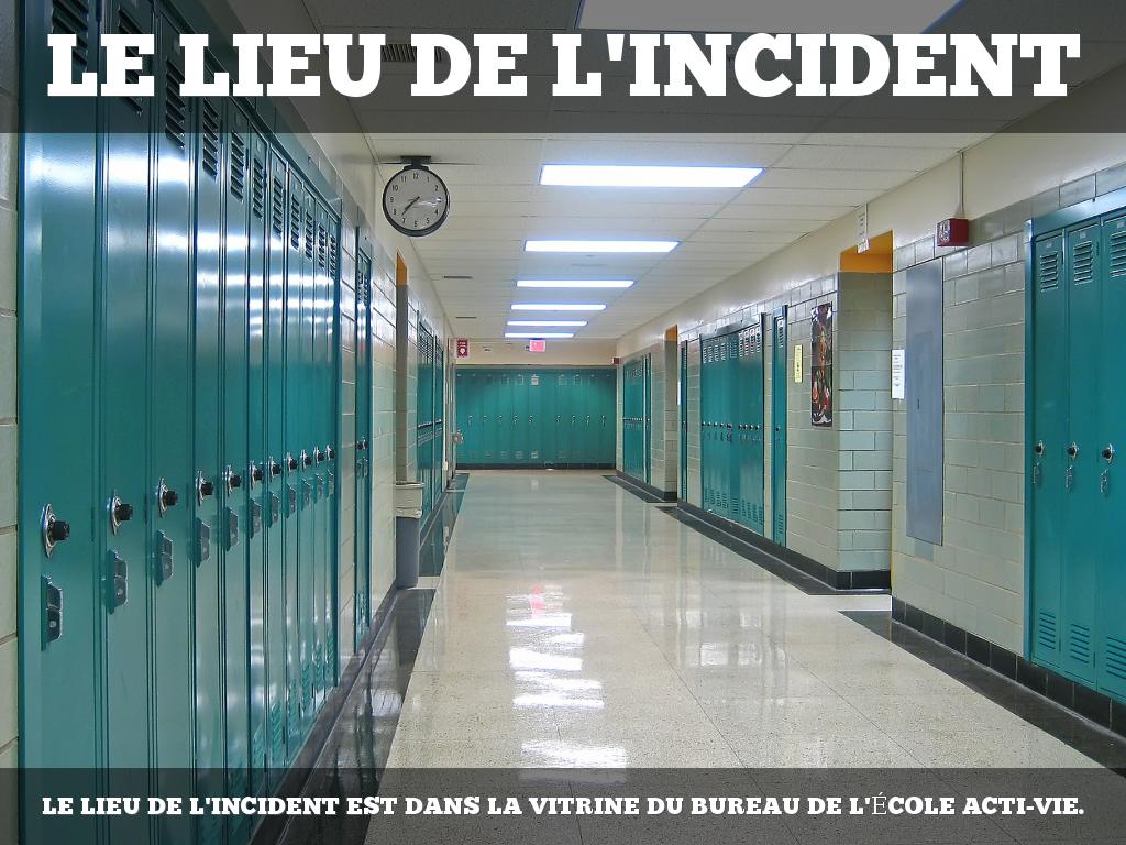 Le lieu de l'incident est dans la vitrine du bureau de L'école Acti-Vie.