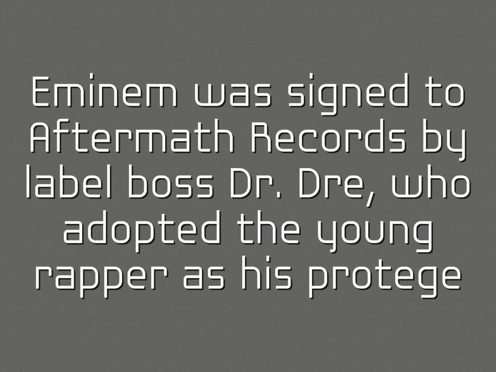 Eminem was signed to Aftermath Records by label boss Dr. Dre, who adopted the young rapper as his protege