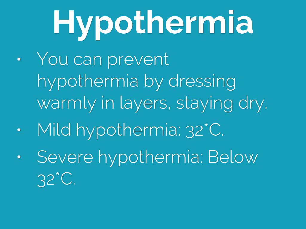 • You can prevent hypothermia by dressing warmly in layers, staying dry.