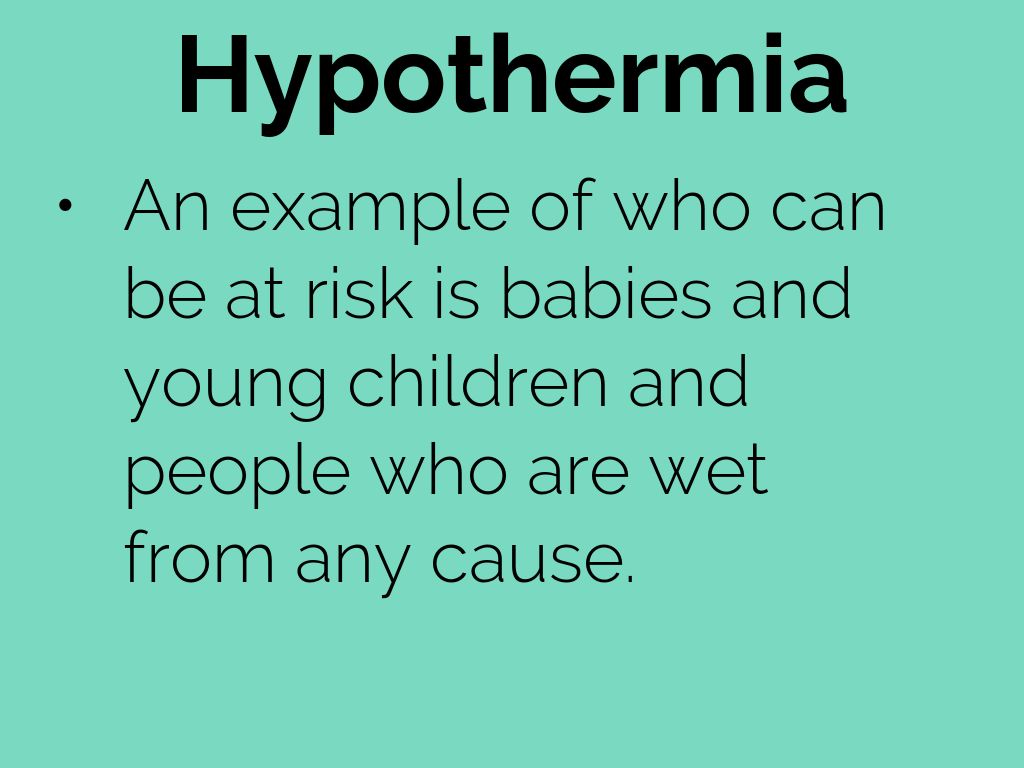 • An example of who can be at risk is babies and young children and people who are wet from any cause.
