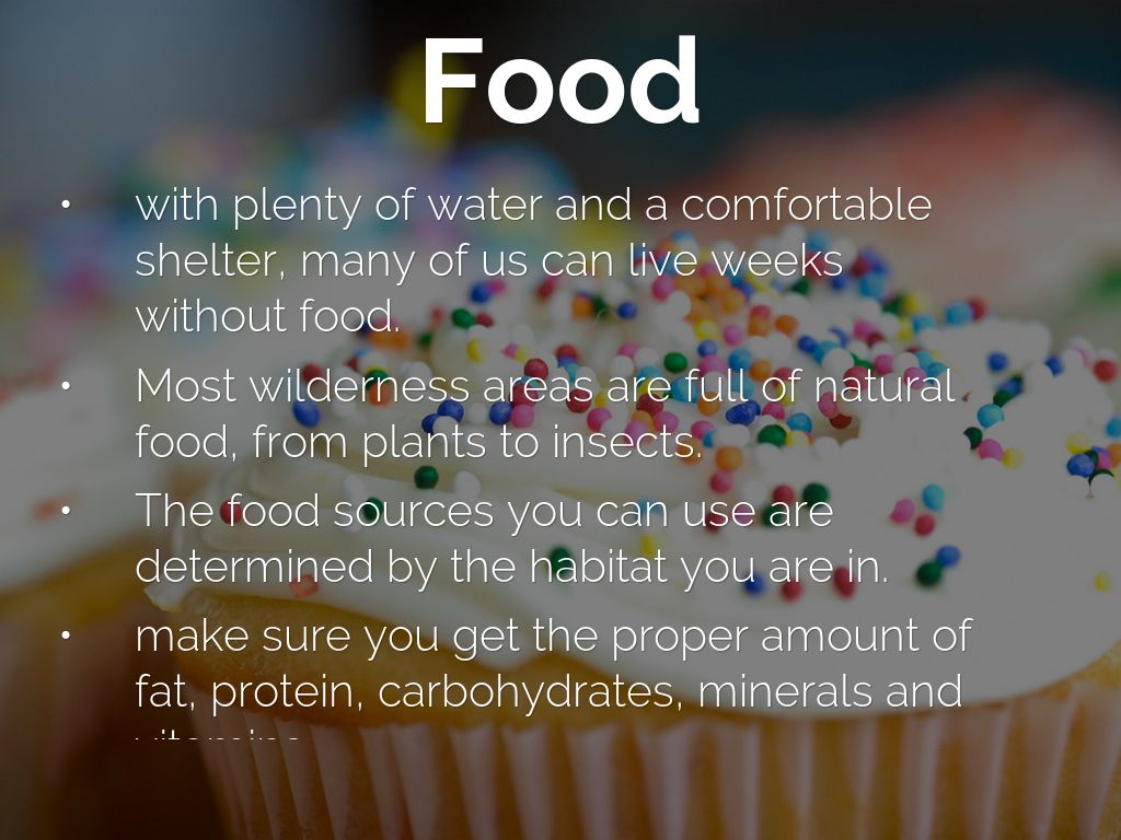 • with plenty of water and a comfortable shelter, many of us can live weeks without food.