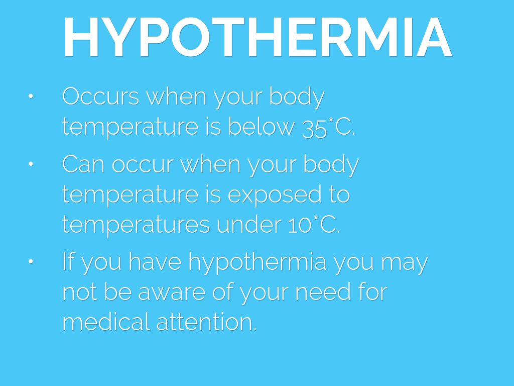 • Can occur when your body temperature is exposed to temperatures under 10*C.
