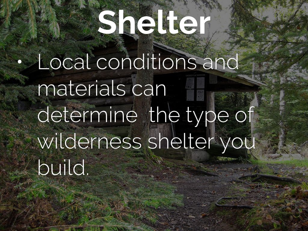• Local conditions and materials can determine the type of wilderness shelter you build.