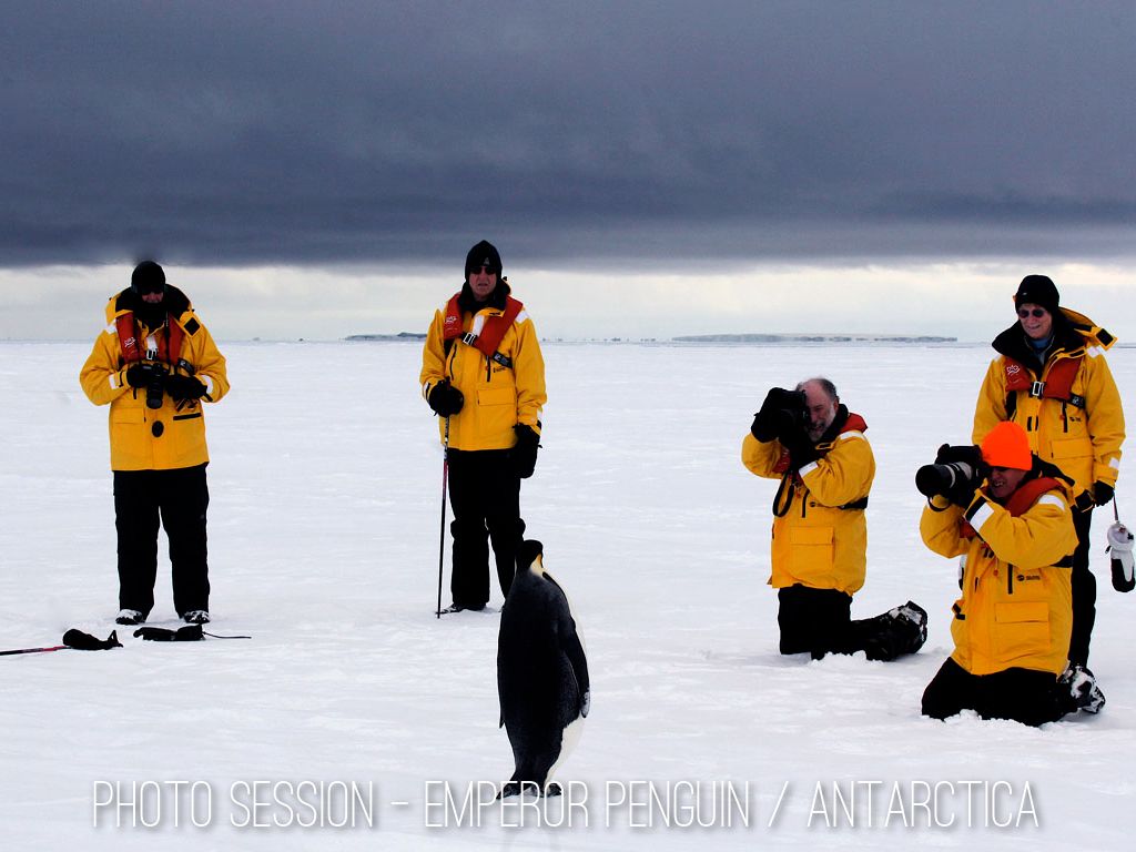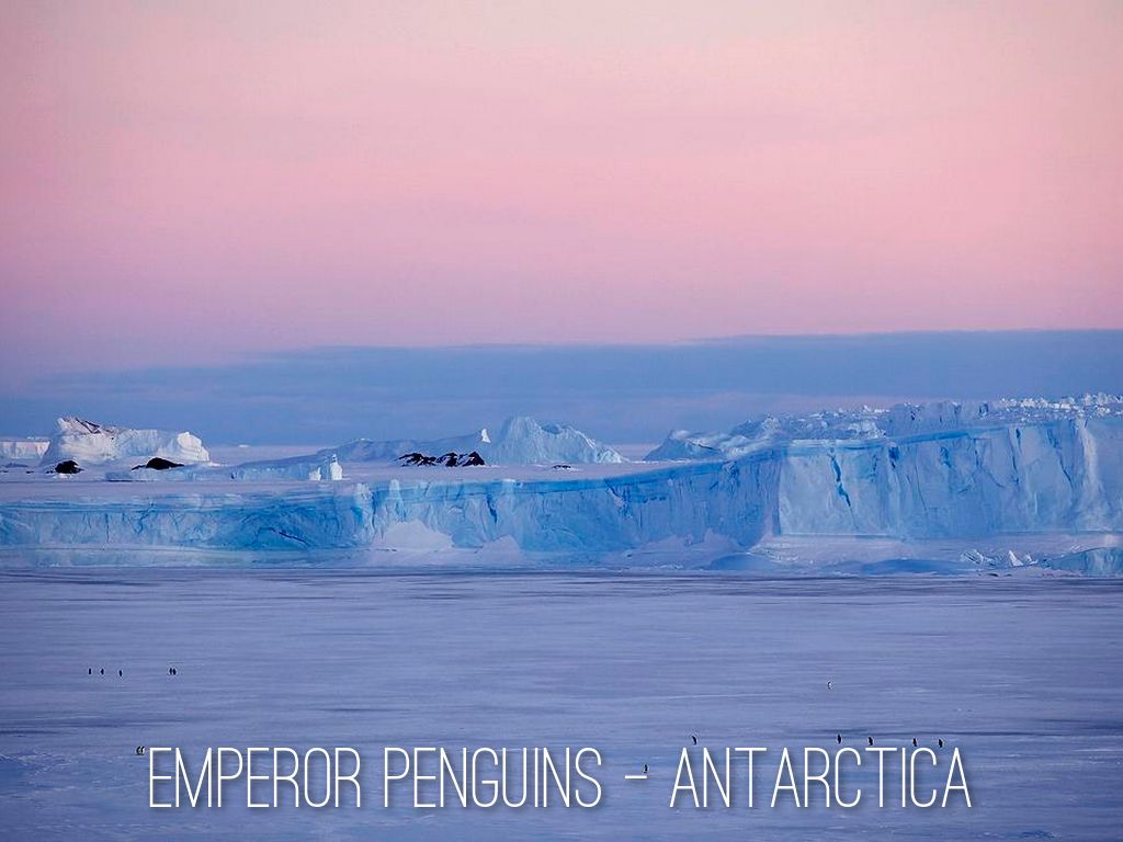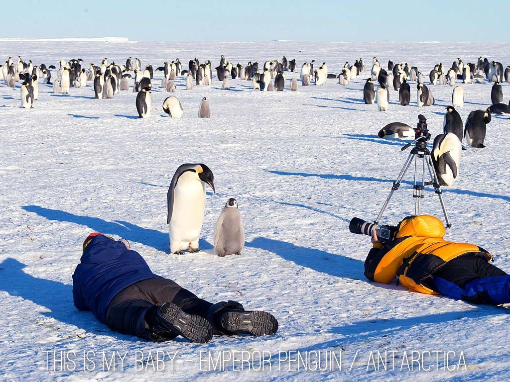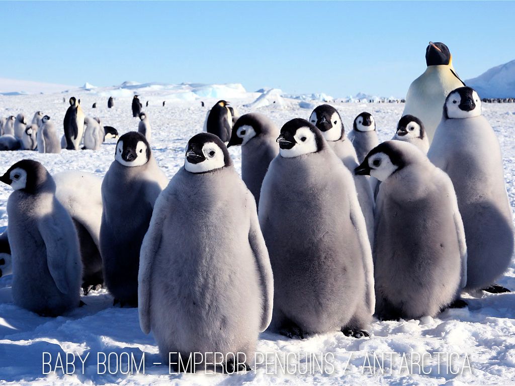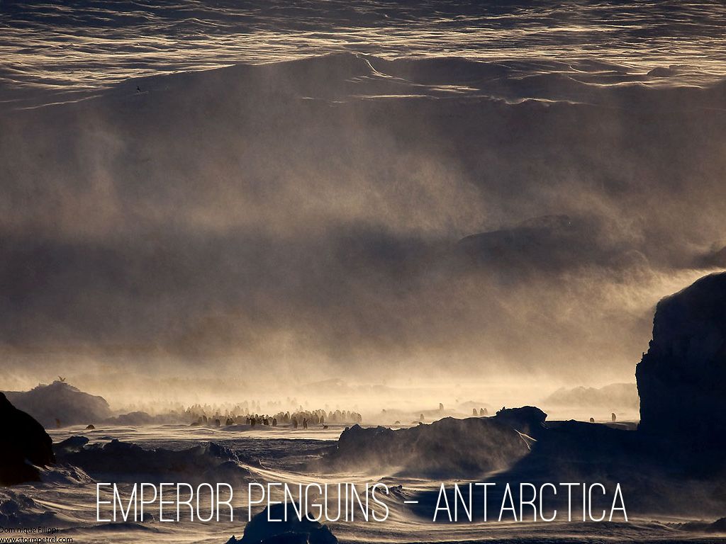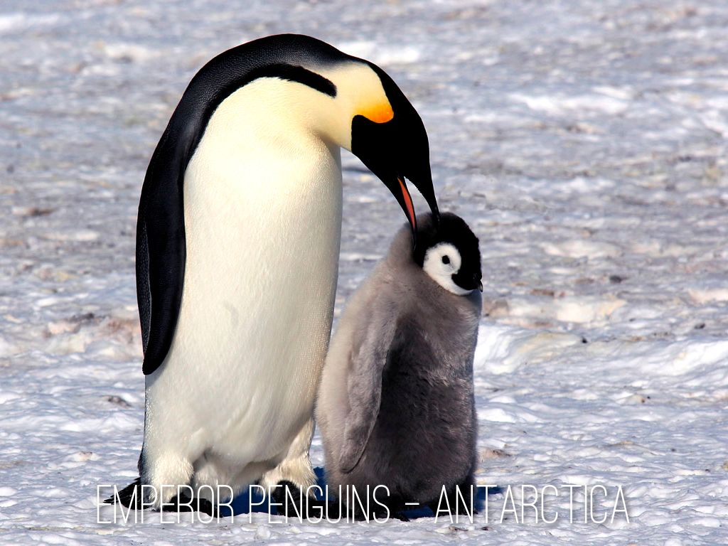 Endemic of Antarctica, Emperor penguins are the tallest of all species of penguins. They reach over one meter, weighing up to 45 kg (99 lb) and considered to be the only animal to inhabit the open ice of Antarctica during the winter, facing temperatures as cold as -60°C (-76°F) and blizzards of 200 km/h (124 mph). Excellent swimmers, they can dive deeper than any other bird – as deep as 565 m (1850 ft.) – and they can stay under for more than 20 minutes.