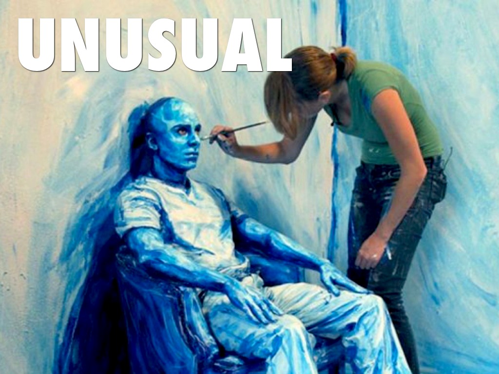 The unusual in this piece would be the woman that is painting the piece itself, making her the focal point