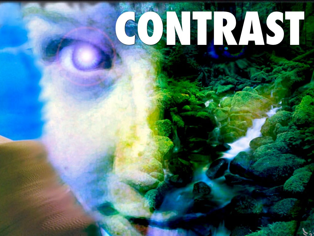 This piece shows contrast by how the boys face differs in color from one side to the other.
