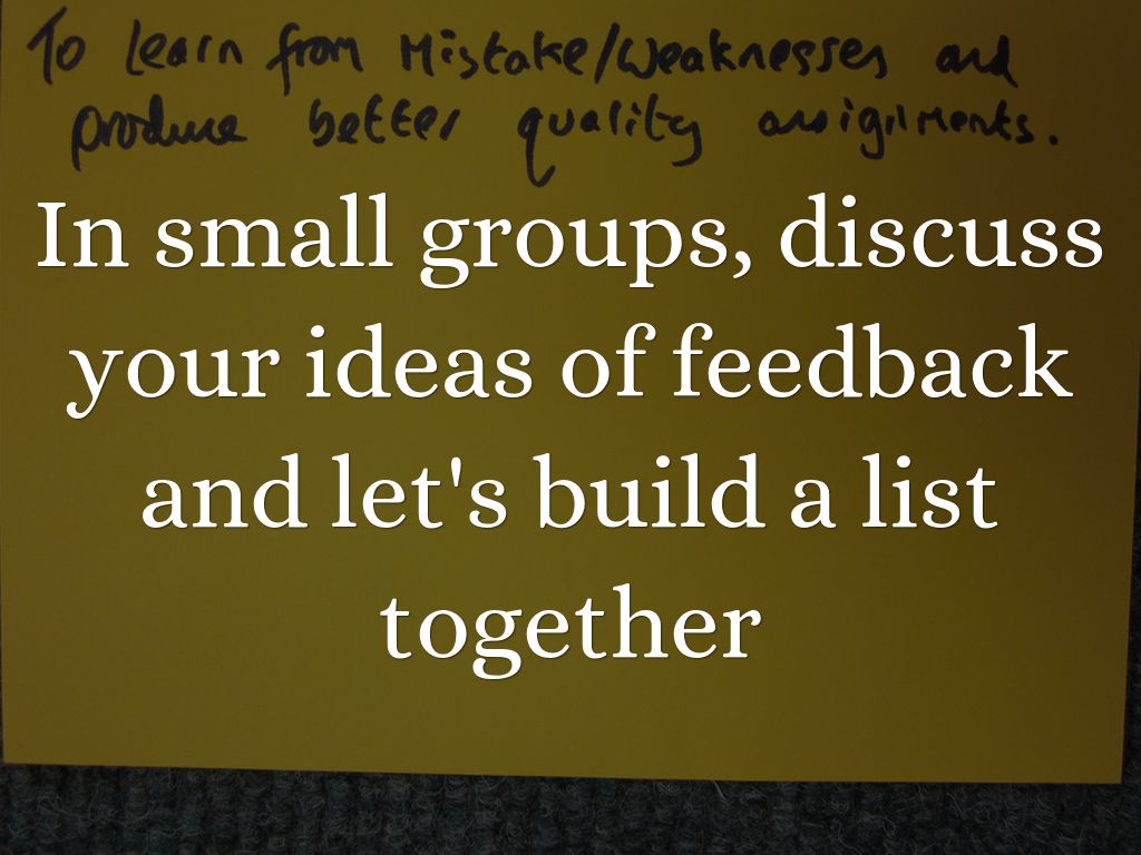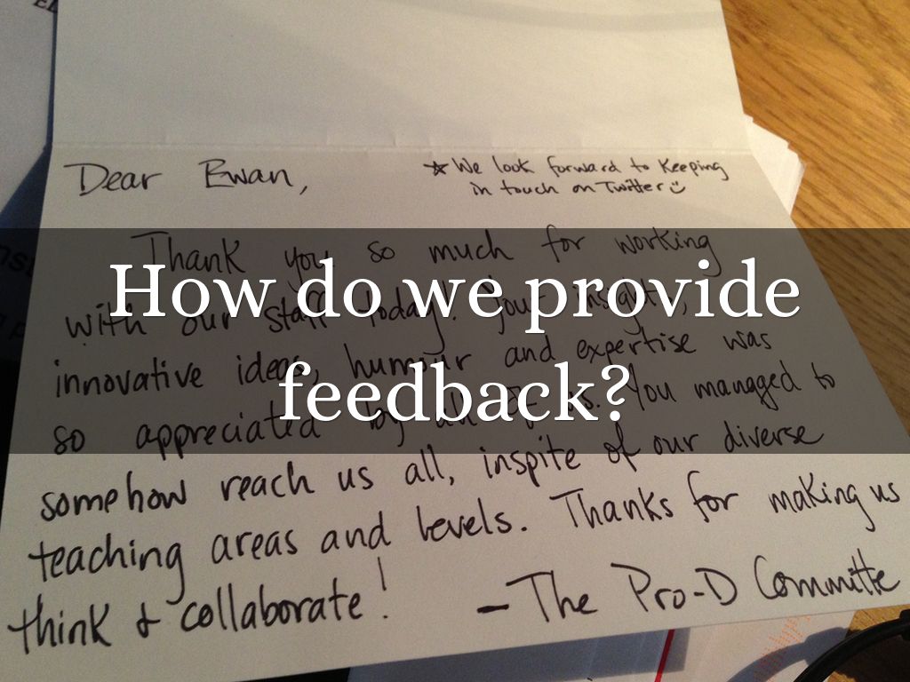 Take a minute to think about feedback. Jot a few things down and then with a partner, come up with a succinct definition.
