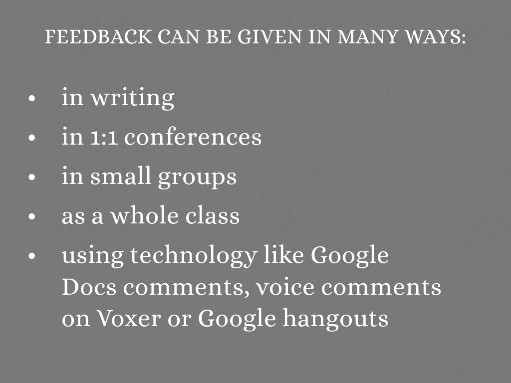 using technology like Google Docs comments, voice comments on Voxer or Google hangouts