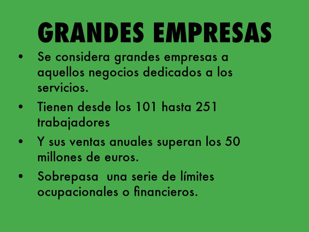 Se considera grandes empresas a aquellos negocios dedicados a los servicios.