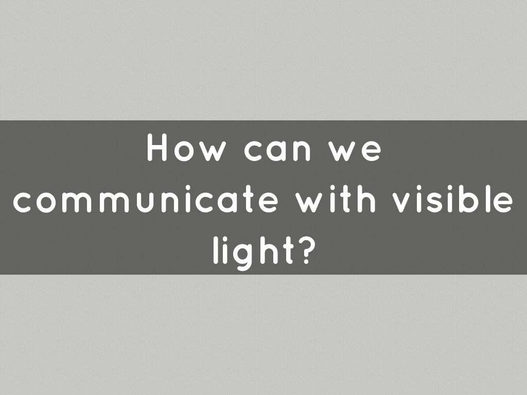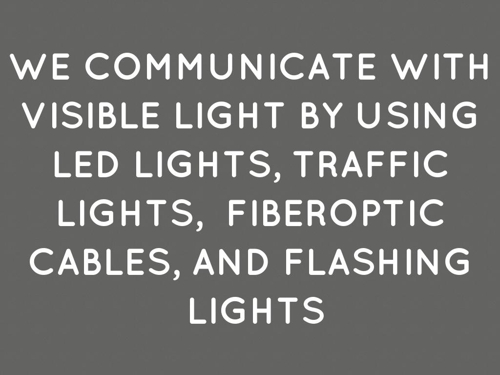 WE COMMUNICATE WITH VISIBLE LIGHT BY USING LED LIGHTS, TRAFFIC LIGHTS, FIBEROPTIC CABLES, AND FLASHING LIGHTS