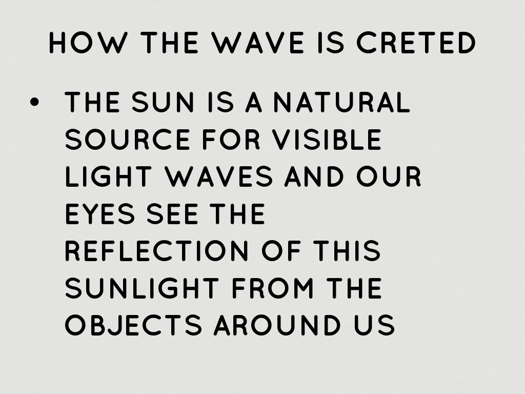 THE SUN IS A NATURAL SOURCE FOR VISIBLE LIGHT WAVES AND OUR EYES SEE THE REFLECTION OF THIS SUNLIGHT FROM THE OBJECTS AROUND US