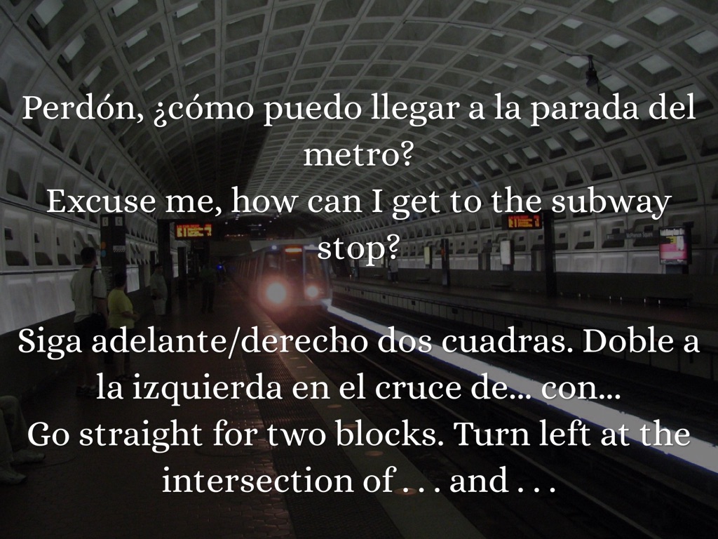 Perdón, ¿cómo puedo llegar a la parada del metro? Excuse me, how can I get to the subway stop?