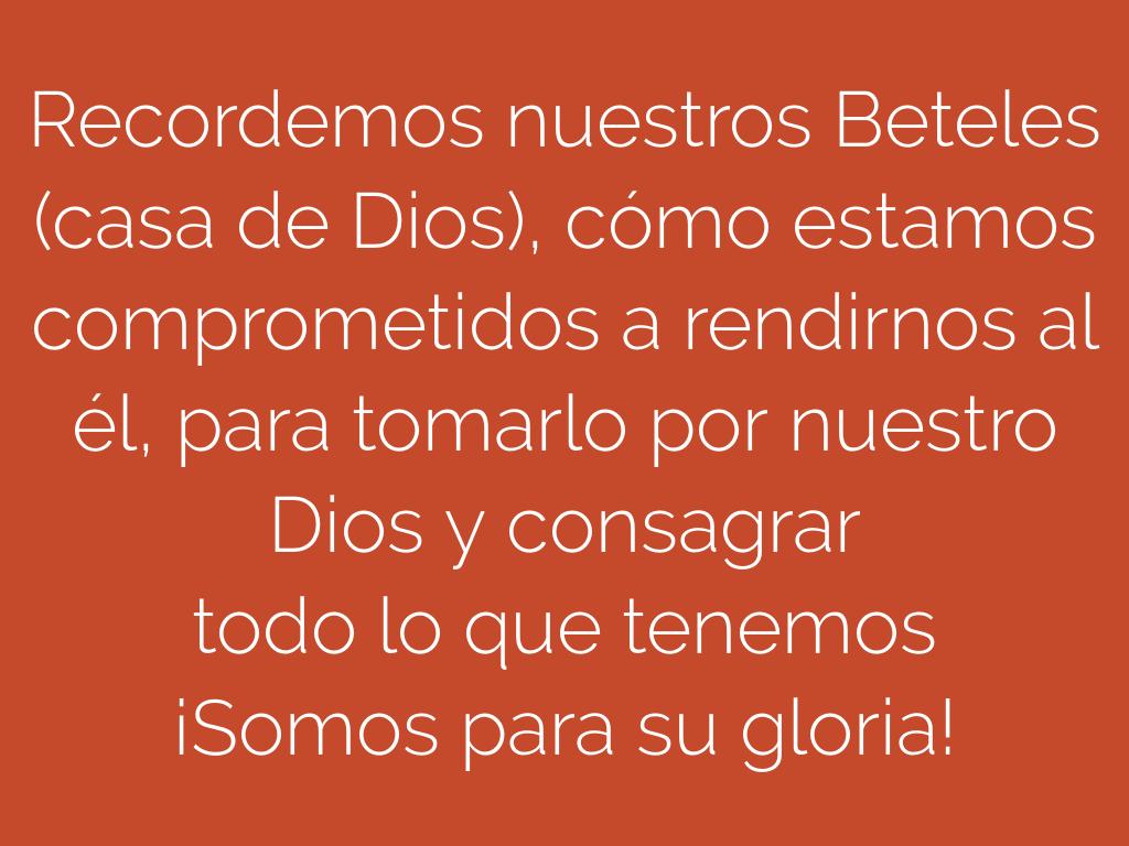 Recordemos nuestros Beteles (casa de Dios), cómo estamos comprometidos a rendirnos al él, para tomarlo por nuestro Dios y consagrar