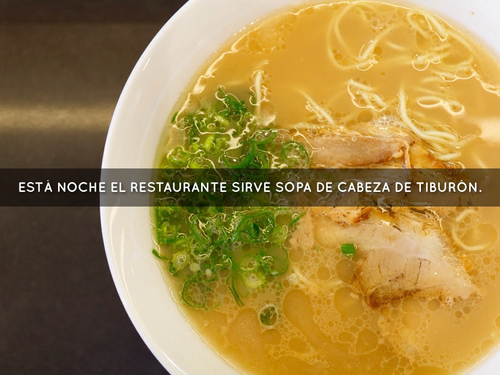 ESTÁ NOCHE EL RESTAURANTE SIRVE SOPA DE CABEZA DE TIBURÓN.