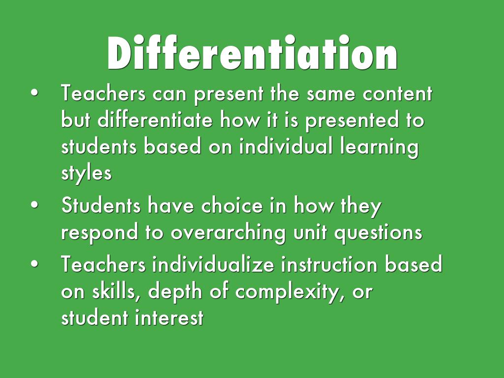 Teachers can present the same content but differentiate how it is presented to students based on individual learning styles