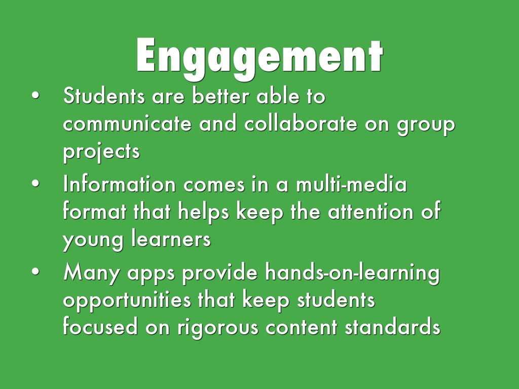Many apps provide hands-on-learning opportunities that keep students focused on rigorous content standards