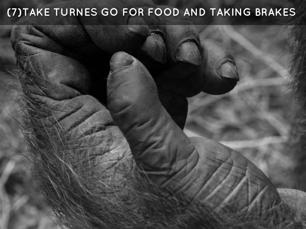 (7)TAKE TURNES GO FOR FOOD AND TAKING BRAKES