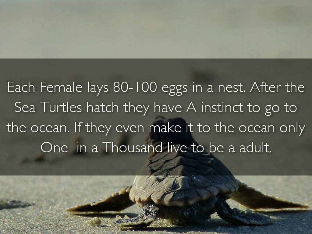 Each Female lays 80-100 eggs in a nest. After the Sea Turtles hatch they have A instinct to go to the ocean. If they even make it to the ocean only One in a Thousand live to be a adult.