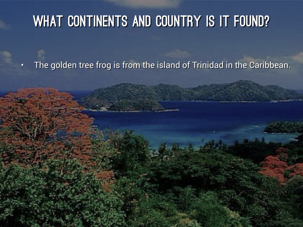 • The golden tree frog is from the island of Trinidad in the Caribbean.