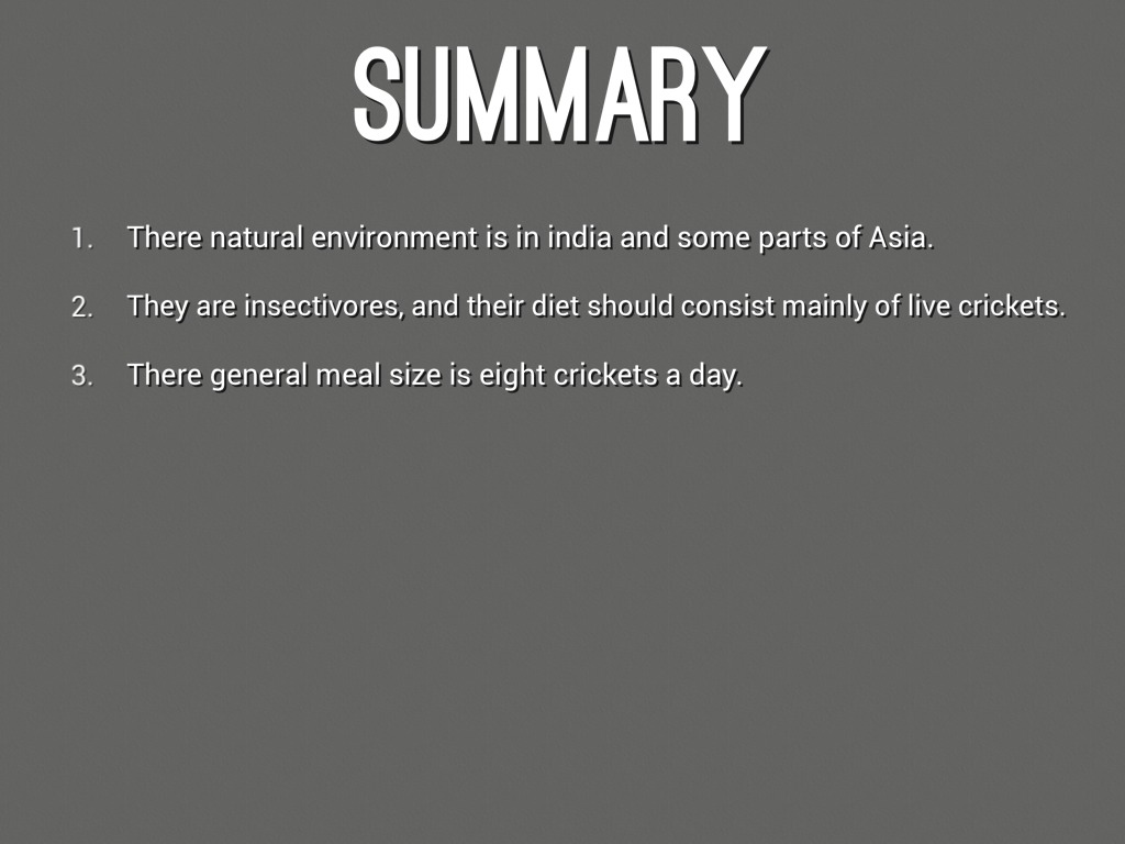 • They are insectivores, and their diet should consist mainly of live crickets.