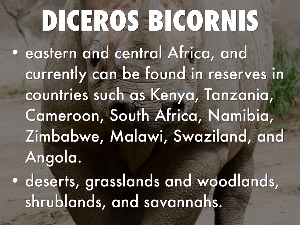 eastern and central Africa, and currently can be found in reserves in countries such as Kenya, Tanzania, Cameroon, South Africa, Namibia, Zimbabwe, Malawi, Swaziland, and Angola.