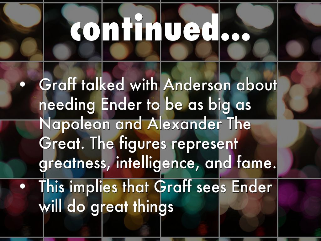Graff talked with Anderson about needing Ender to be as big as Napoleon and Alexander The Great. The figures represent greatness, intelligence, and fame.