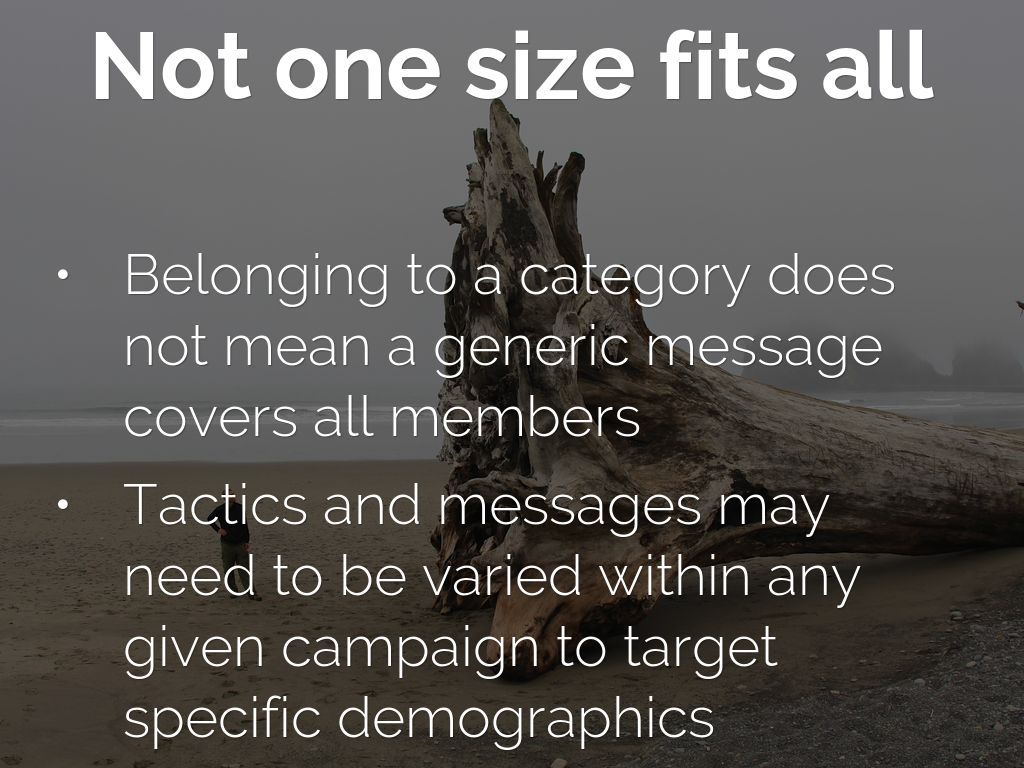 - Tactics and messages may need to be varied within any given campaign to target specific demographics