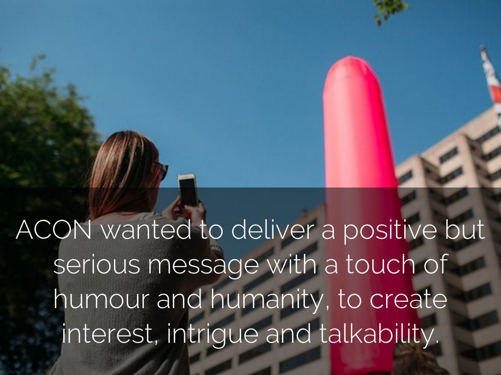 ACON wanted to deliver a positive but serious message with a touch of humour and humanity, to create interest, intrigue and talkability.