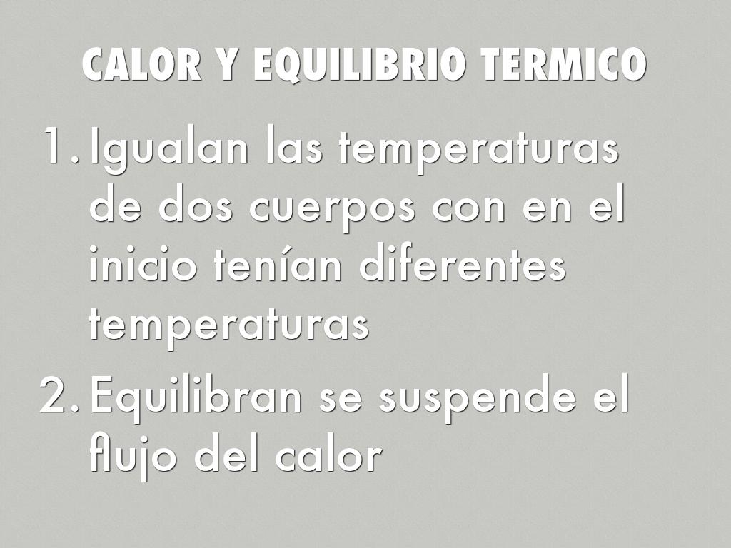 • Igualan las temperaturas de dos cuerpos con en el inicio tenían diferentes temperaturas