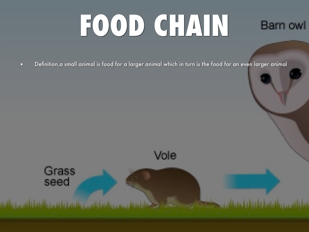 Definition,a small animal is food for a larger animal which in turn is the food for an even larger animal