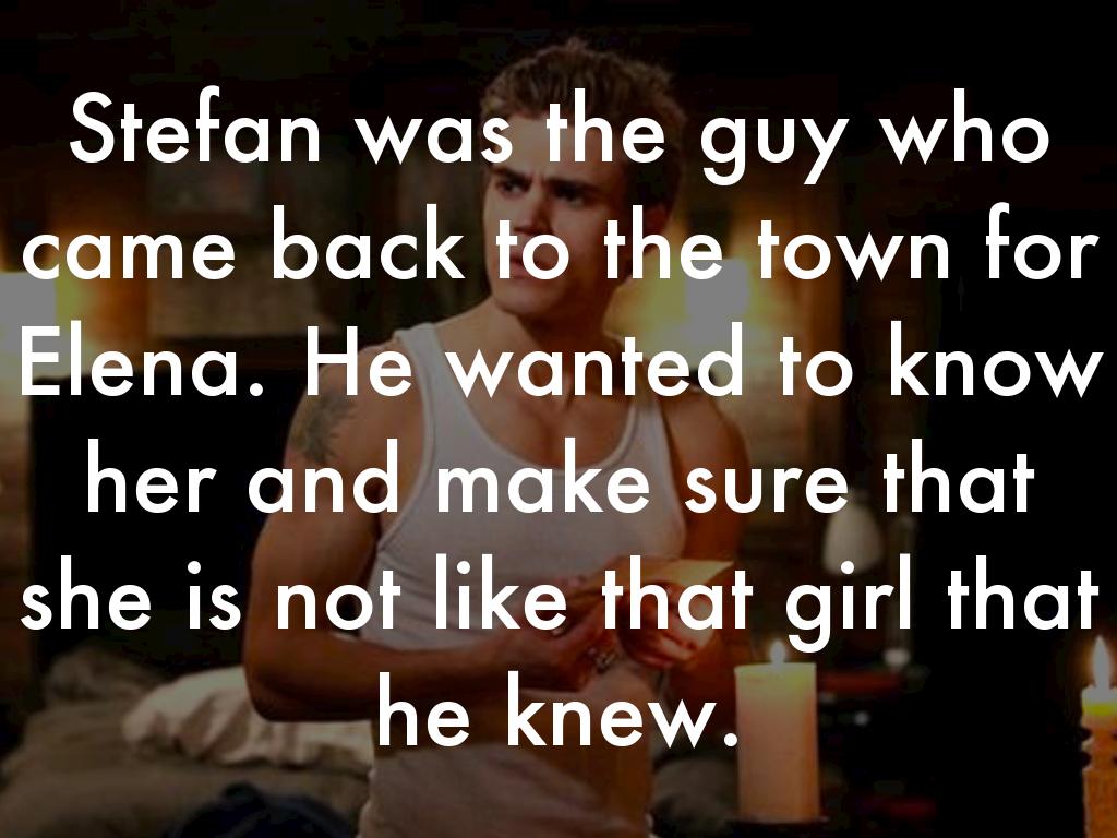 Stefan was the guy who came back to the town for Elena. He wanted to know her and make sure that she is not like that girl that he knew.