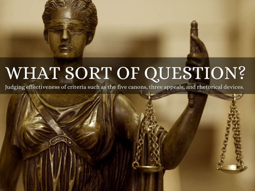 Judging effectiveness of criteria such as the five canons, three appeals, and rhetorical devices.