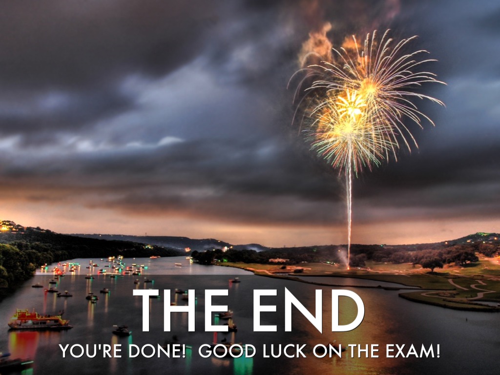 YOU'RE DONE! GOOD LUCK ON THE EXAM!