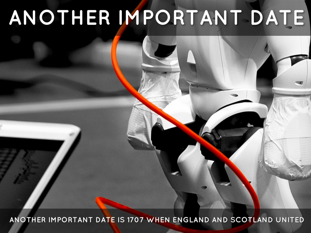 ANOTHER IMPORTANT DATE IS 1707 WHEN ENGLAND AND SCOTLAND UNITED