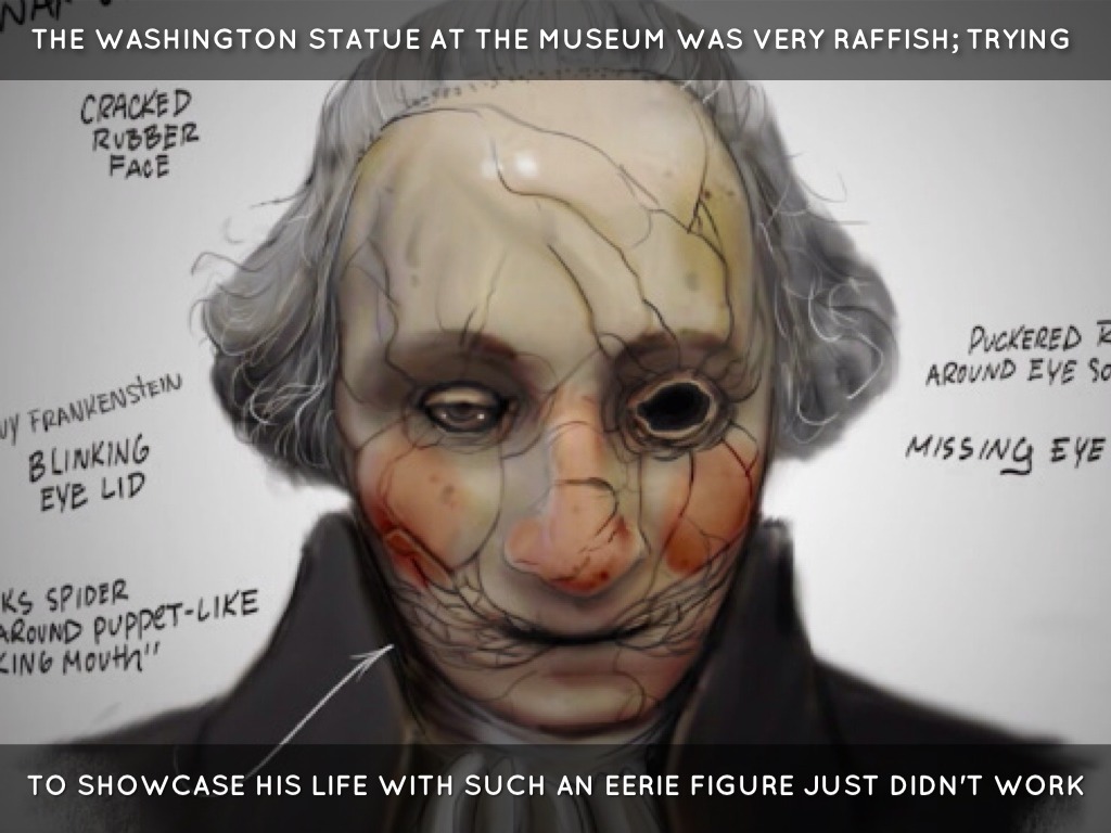 THE WASHINGTON STATUE AT THE MUSEUM WAS VERY RAFFISH; TRYING