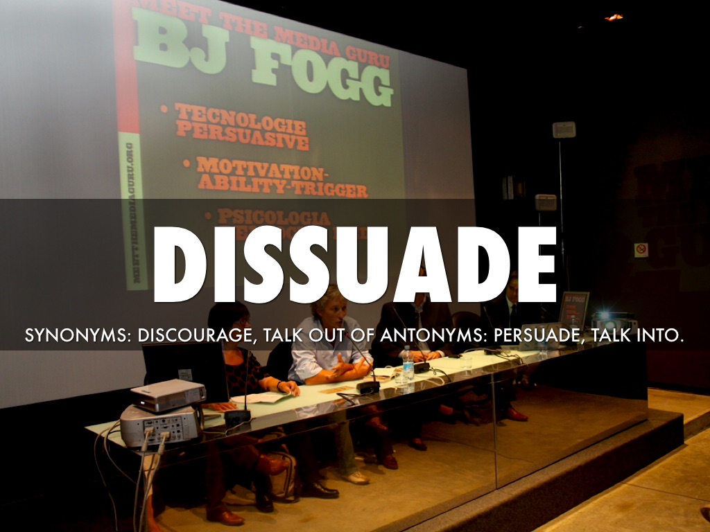 Synonyms: discourage, talk out of antonyms: persuade, talk into.
