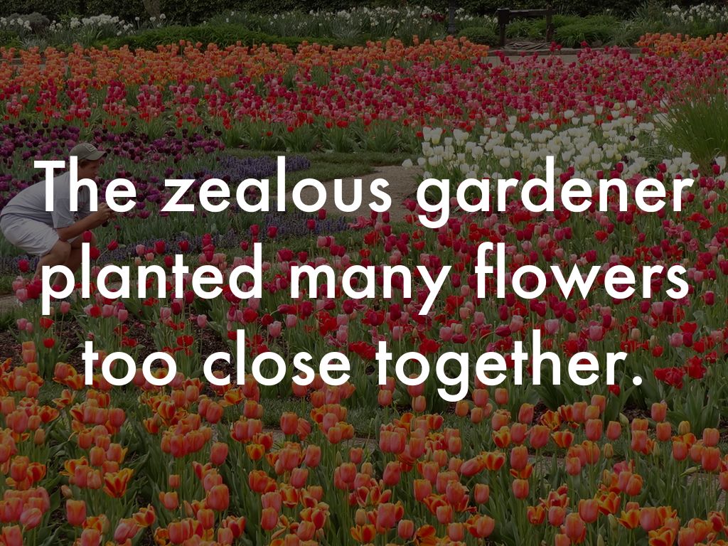 The zealous gardener planted many flowers too close together.