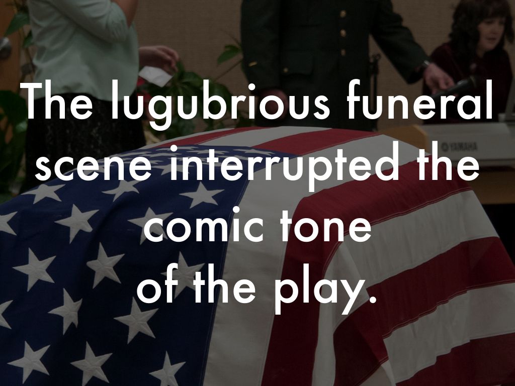 The lugubrious funeral scene interrupted the comic tone