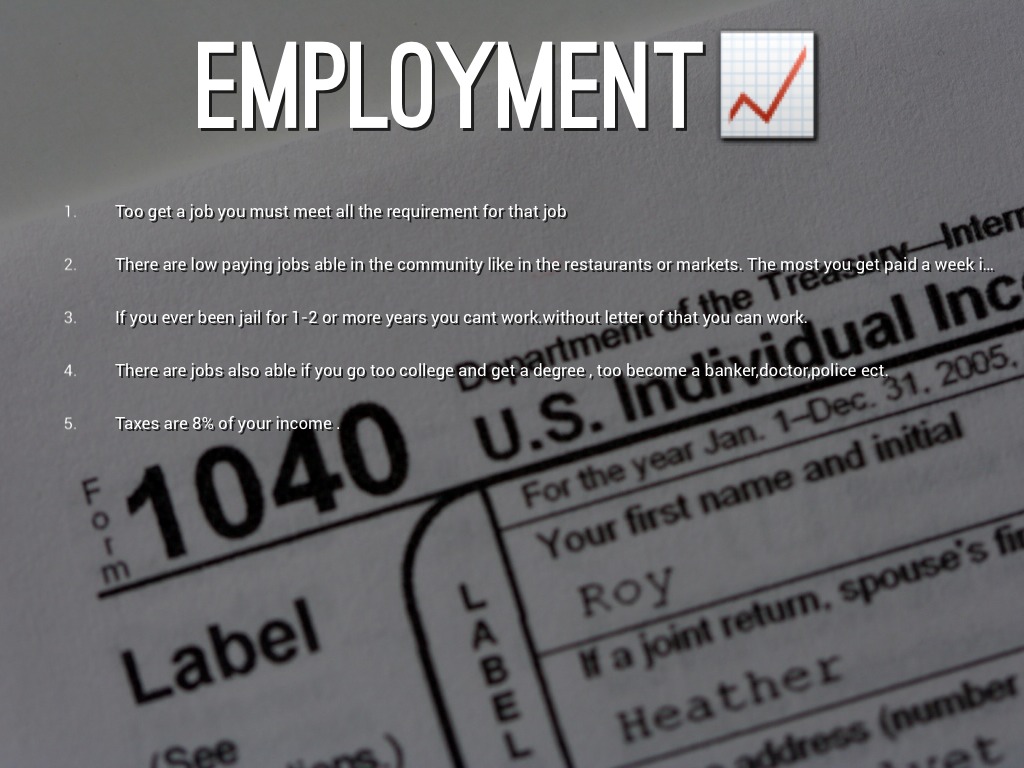 There are low paying jobs able in the community like in the restaurants or markets. The most you get paid a week is $50