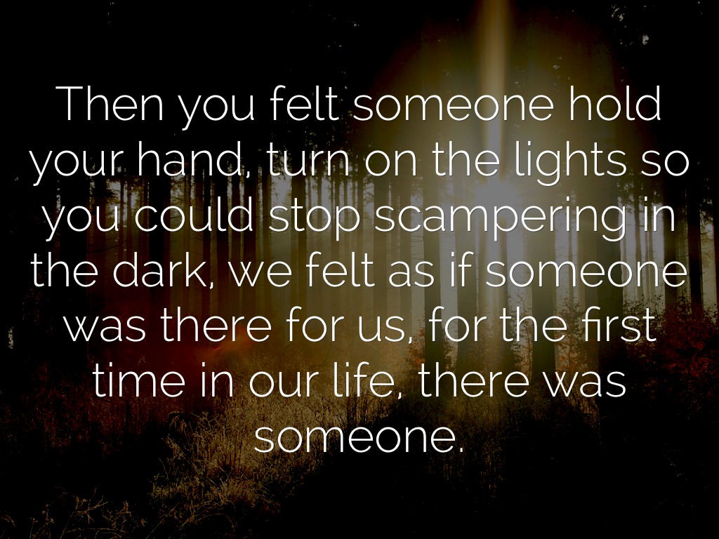 Then you felt someone hold your hand, turn on the lights so you could stop scampering in the dark, we felt as if someone was there for us, for the first time in our life, there was someone.