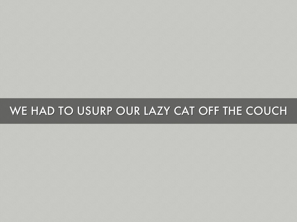 WE HAD TO USURP OUR LAZY CAT OFF THE COUCH