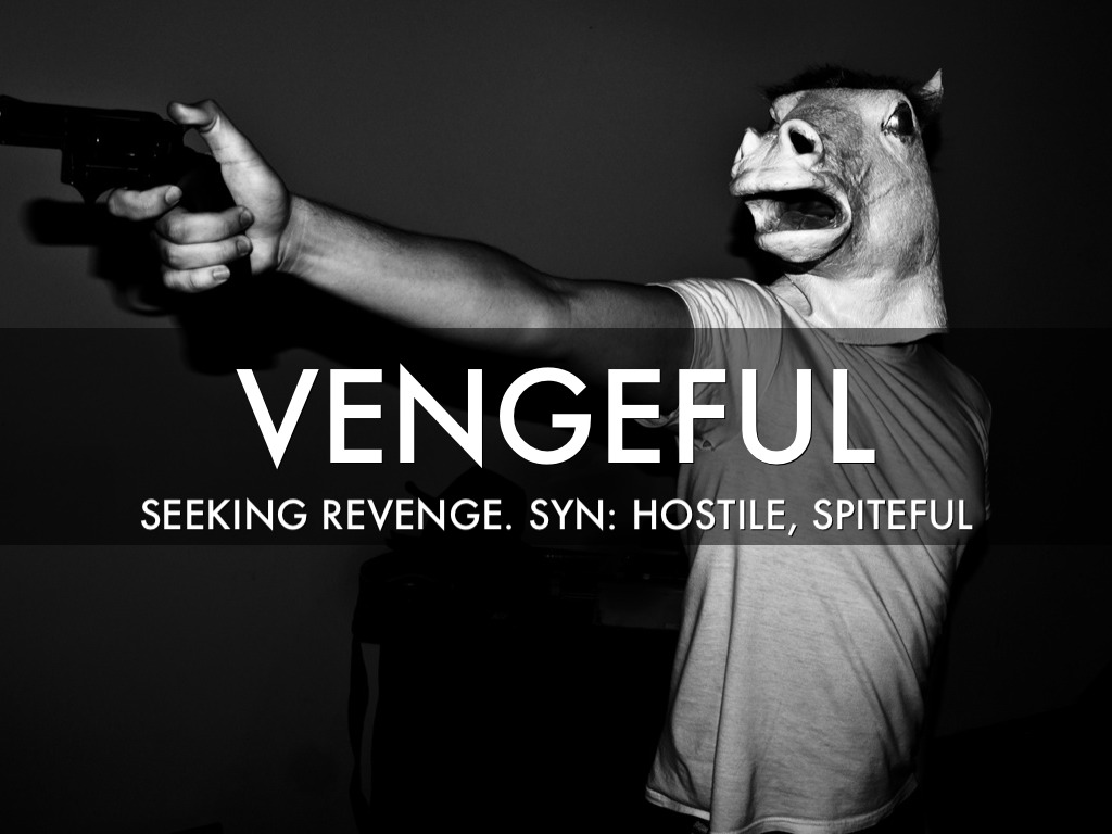 SEEKING REVENGE. SYN: HOSTILE, SPITEFUL