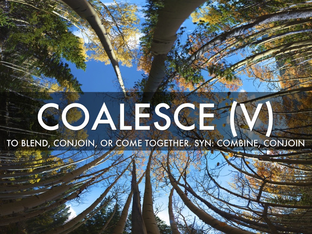 TO BLEND, CONJOIN, OR COME TOGETHER. SYN: COMBINE, CONJOIN